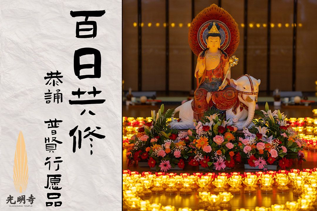 2025年11月7日,为祈愿正法久住、众生安乐,柳江光明寺特启建“百日共修法会”,从此日起,全寺法师每日上午9:00在藏经楼二楼恭诵《普贤行愿品》,以净除业障、增长愿力,成就如普贤菩萨般广大行愿。
