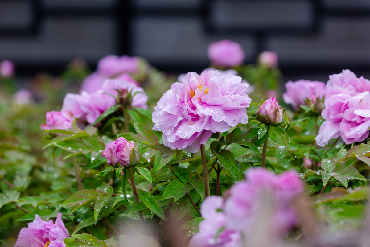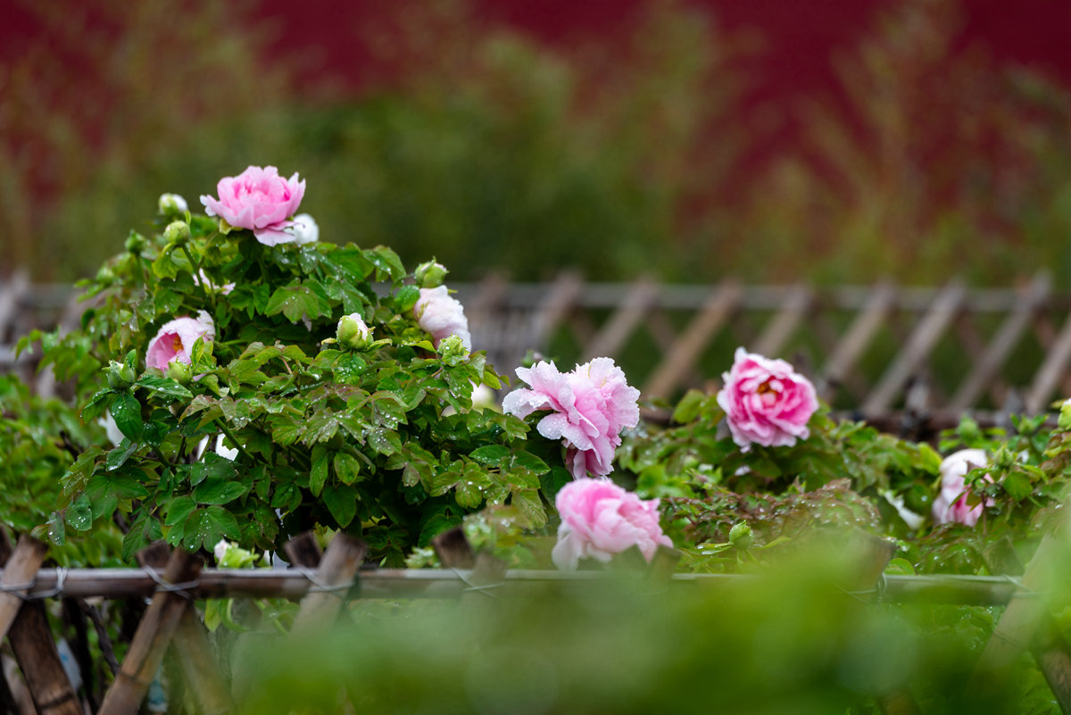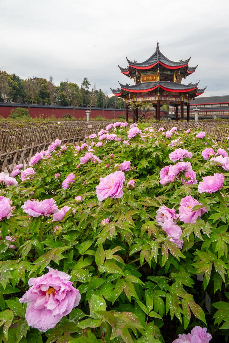 惊蛰时节,春意渐浓,大佛禅院园林区怡园内,牡丹花事始盛。
