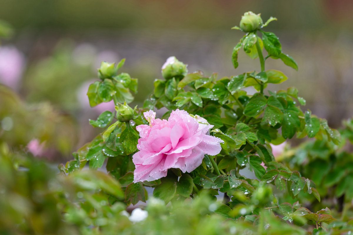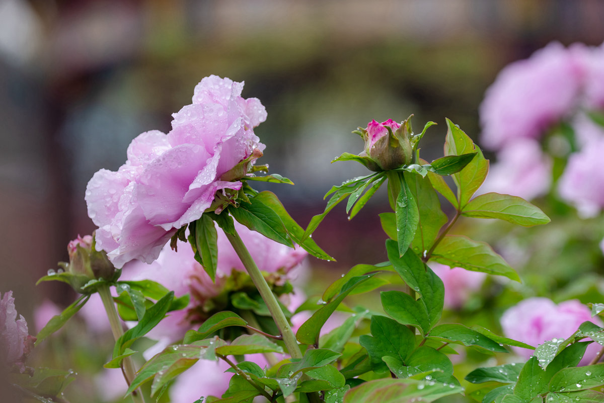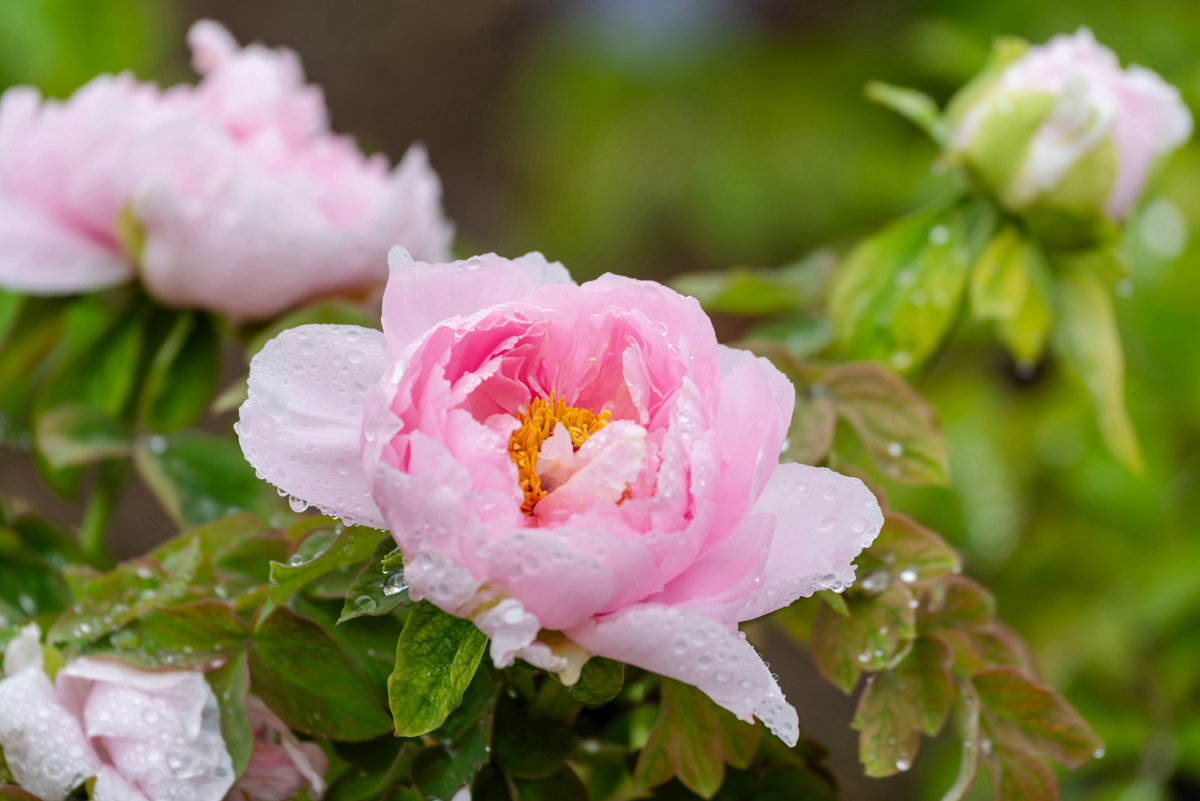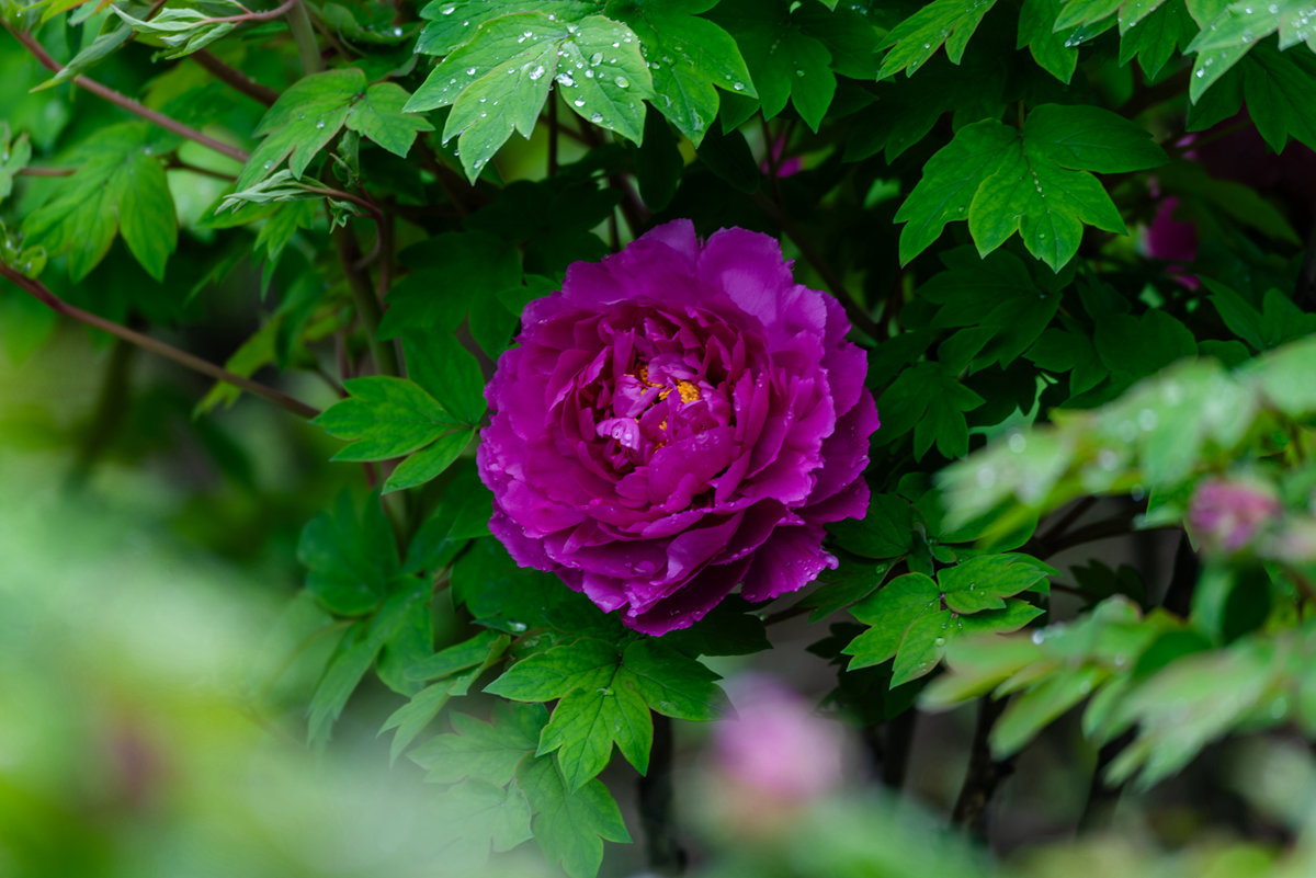 惊蛰时节,春意渐浓,大佛禅院园林区怡园内,牡丹花事始盛。