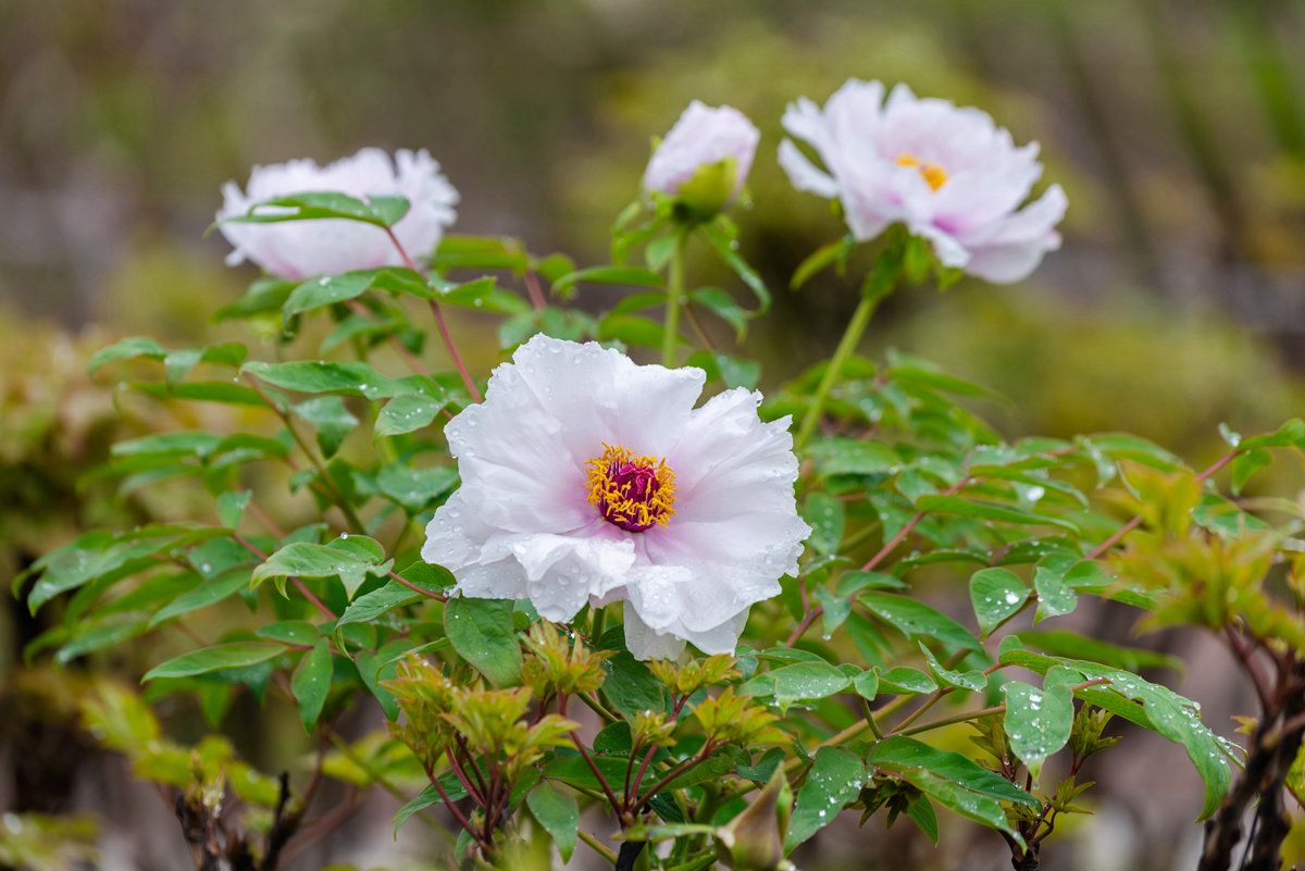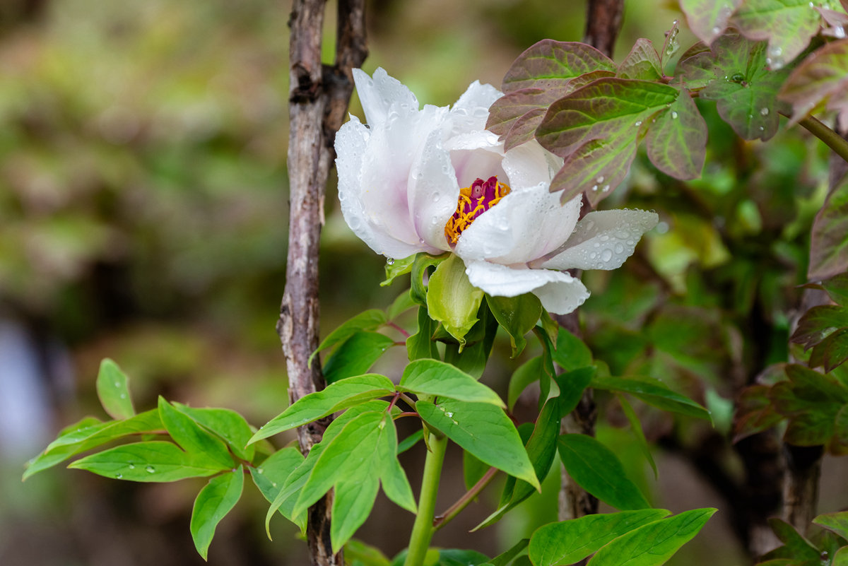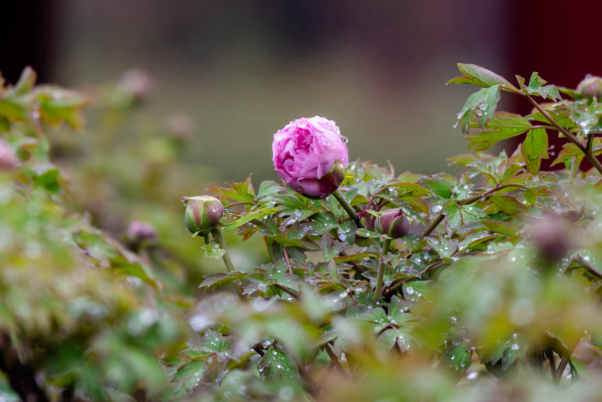 一枝牡丹率先绽放,独报春信,随后星星点点、渐次舒展。