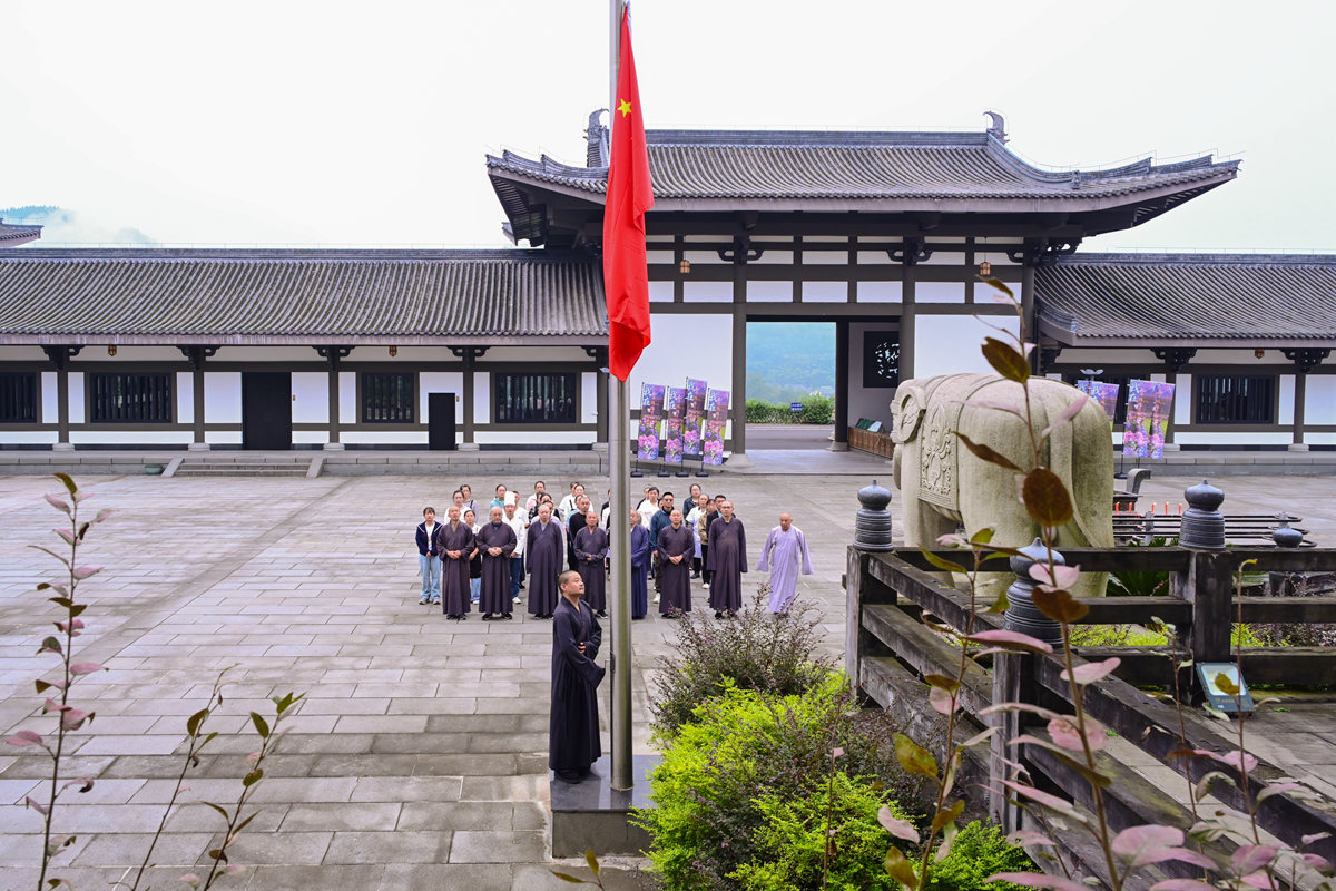 峨眉山佛教网消息:为庆祝中华人民共和国成立76周年,国庆前夕,峨眉山佛教协会、峨眉山佛学院、大佛禅院在大佛禅院国学广场举行了庄严肃穆的“迎国庆·升国旗”仪式,佛协本部、峨眉山佛学院及大佛禅院全体法师参加仪式。