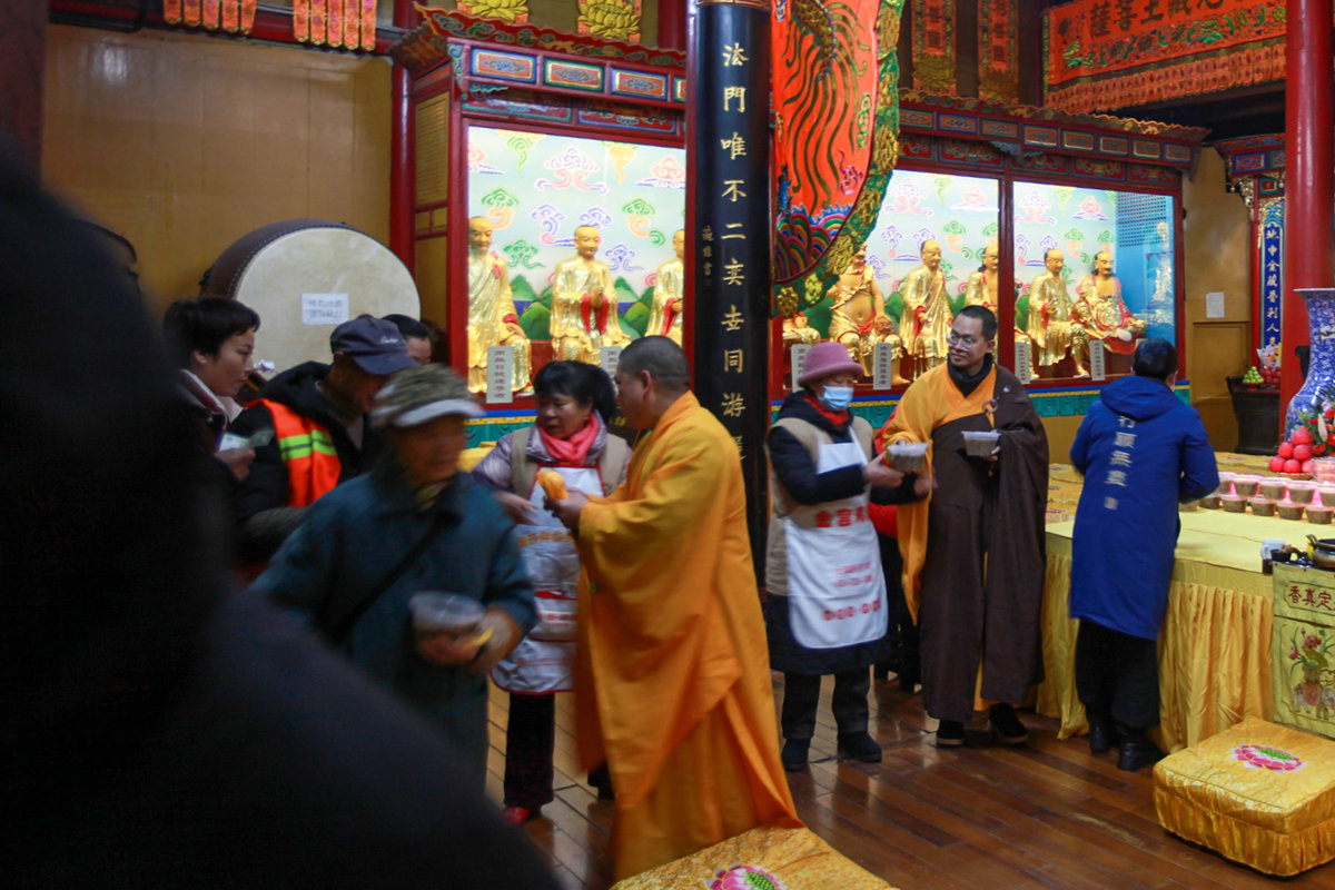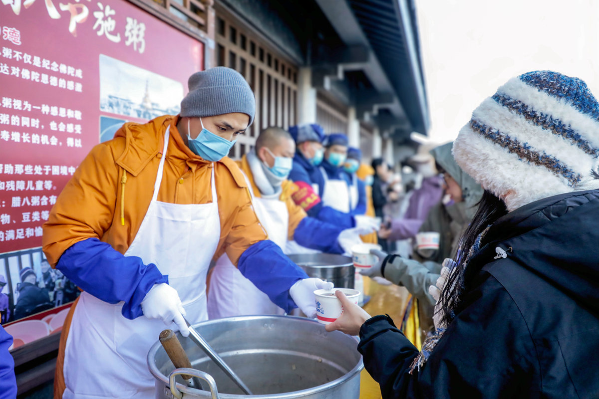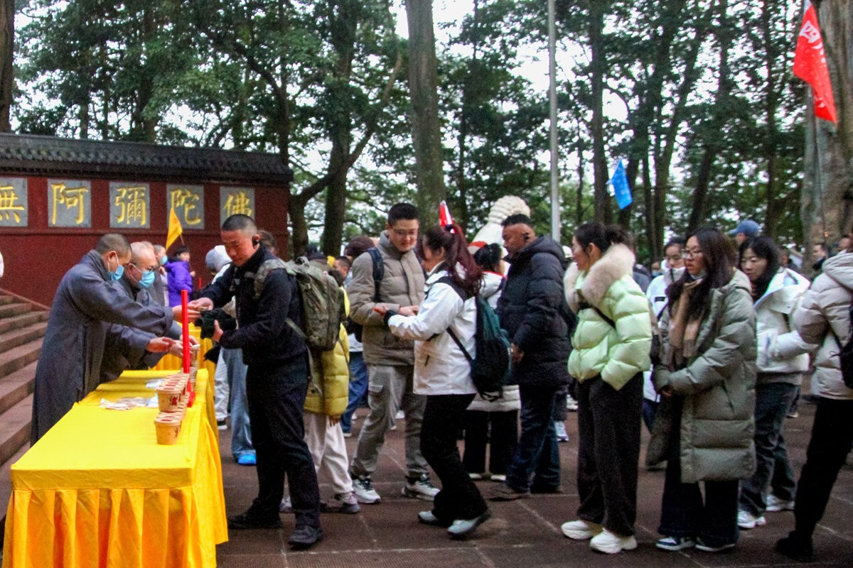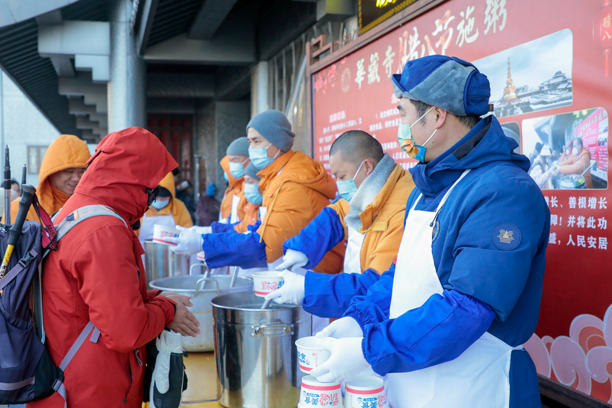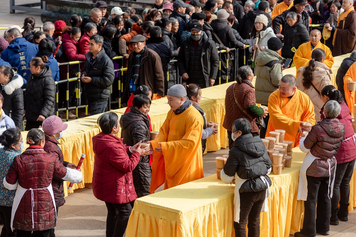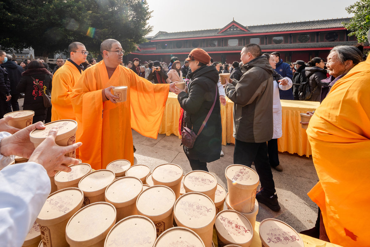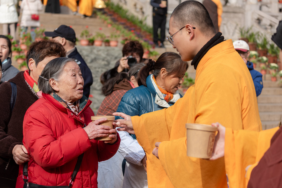 峨眉山佛教网消息:2026年元月26日(农历乙巳蛇年腊月初八),是中国传统的腊八节,也是释迦牟尼佛成道日,为弘扬中华优秀传统文化、感念佛陀恩德、践行普贤菩萨行愿精神、传递节日温暖,峨眉山全山各寺开展免费施粥送福活动,为信众游人送上节日祝福。在各寺院的施粥会上,信众、游人排队接受施粥,共沐佛光、同沾法喜。