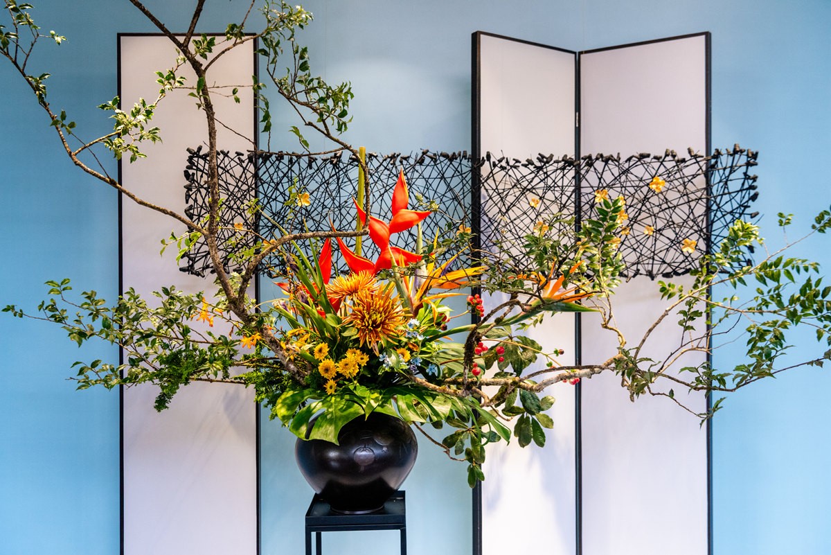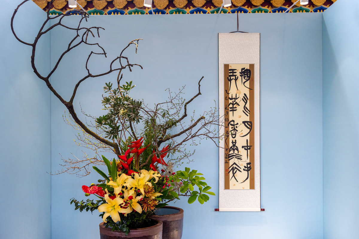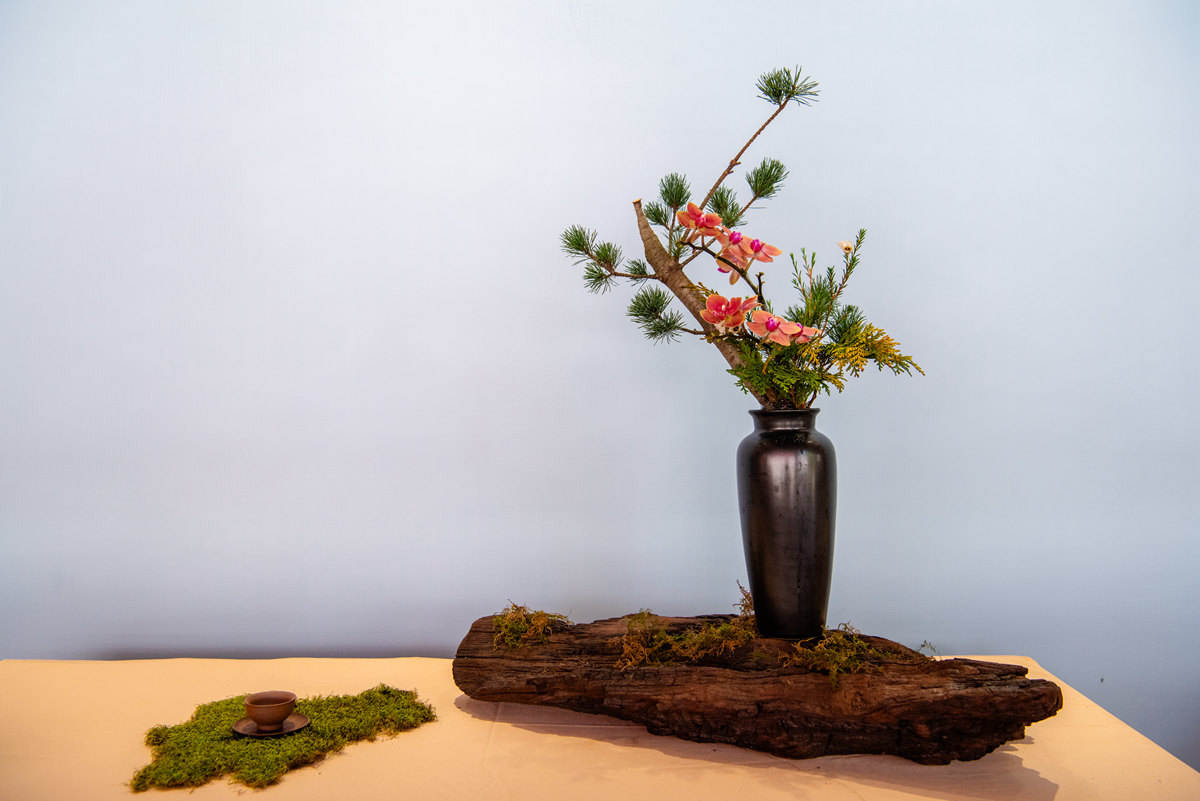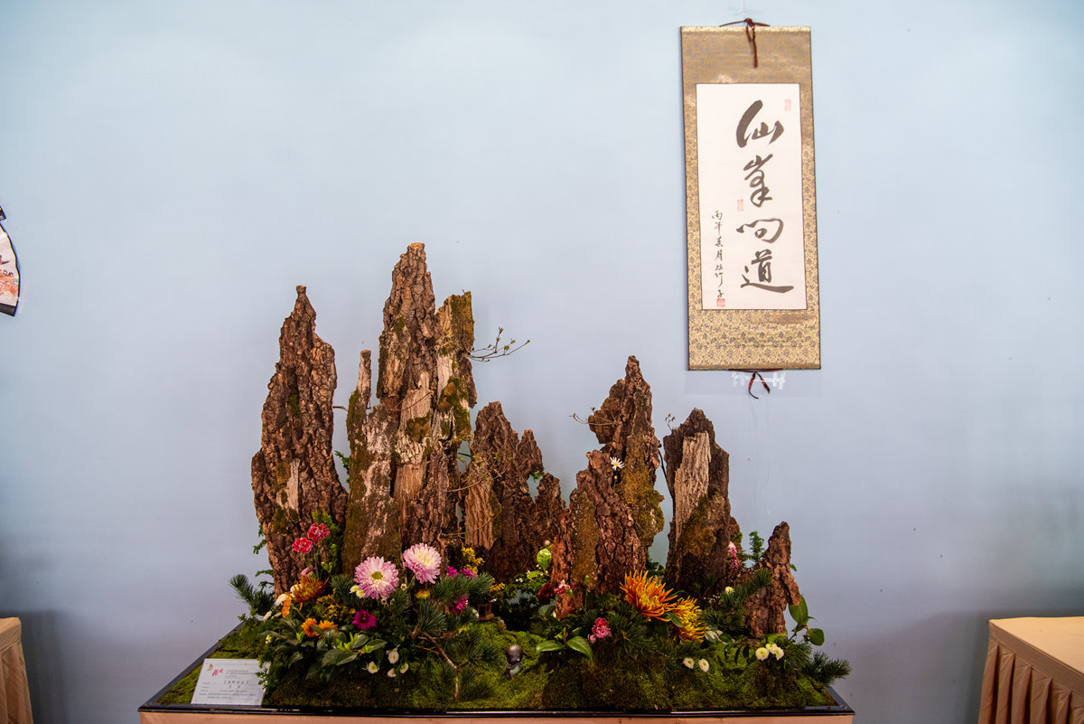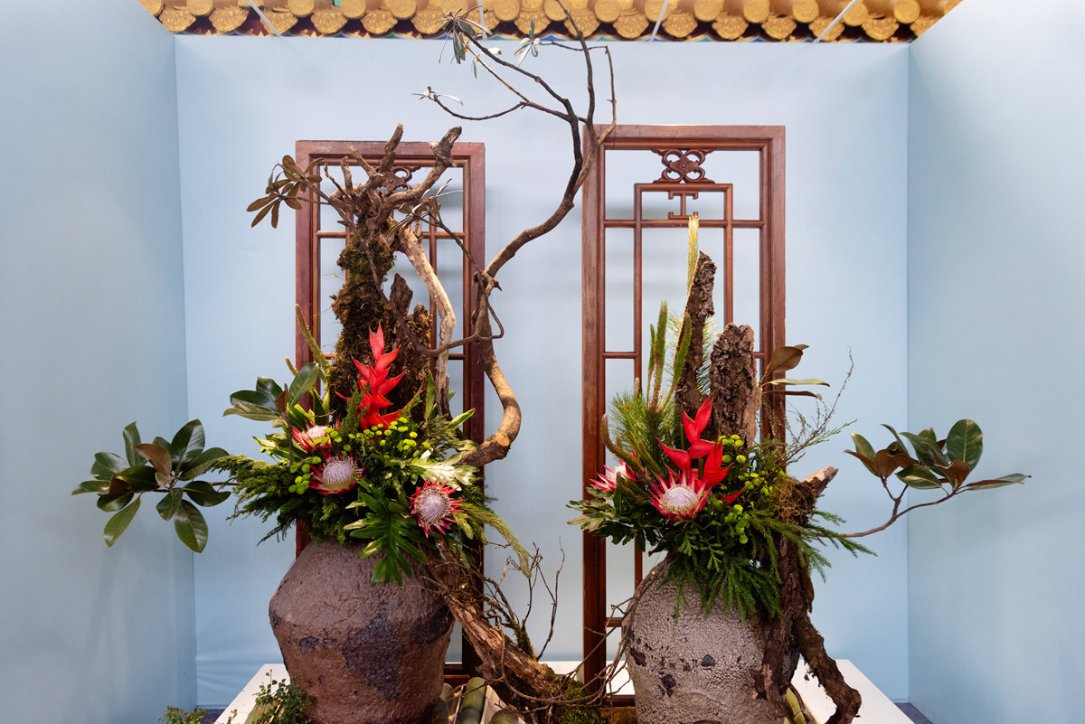 蔡仲娟插花大师展出作品《君子喜聚峨眉春》