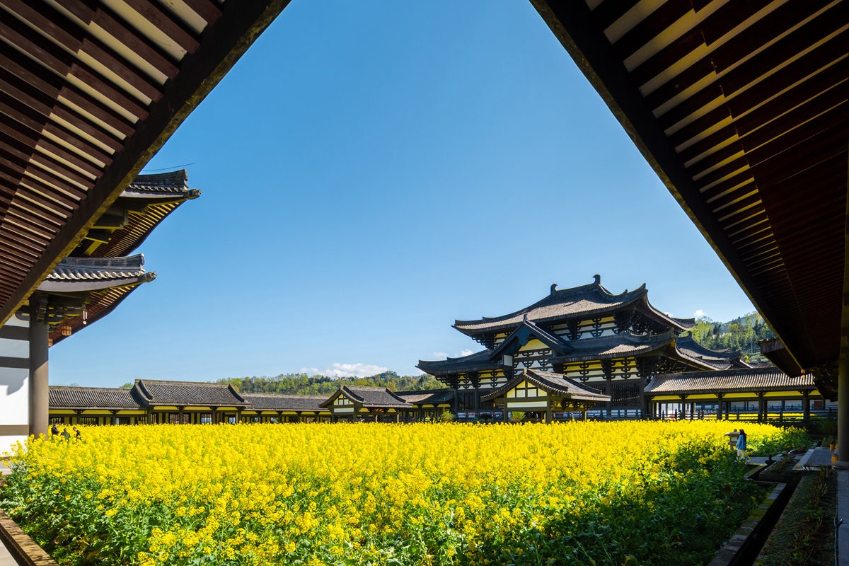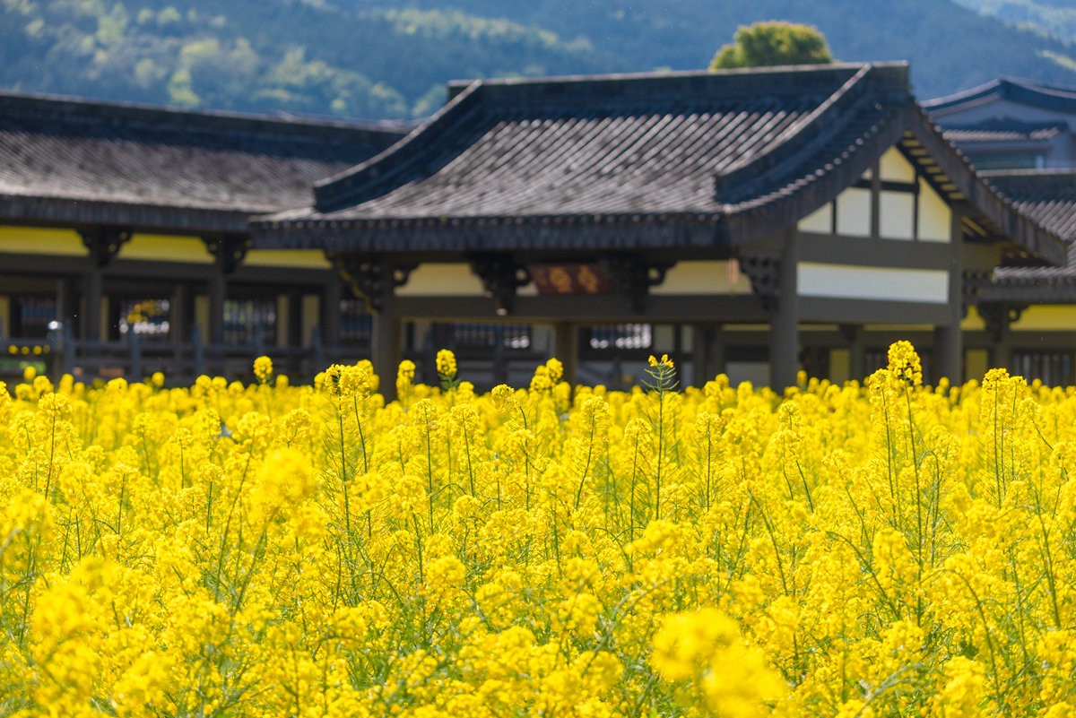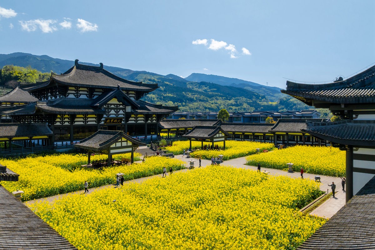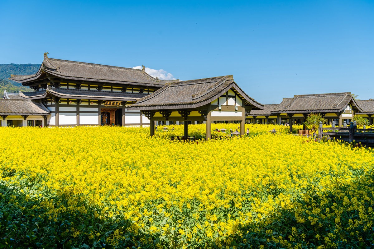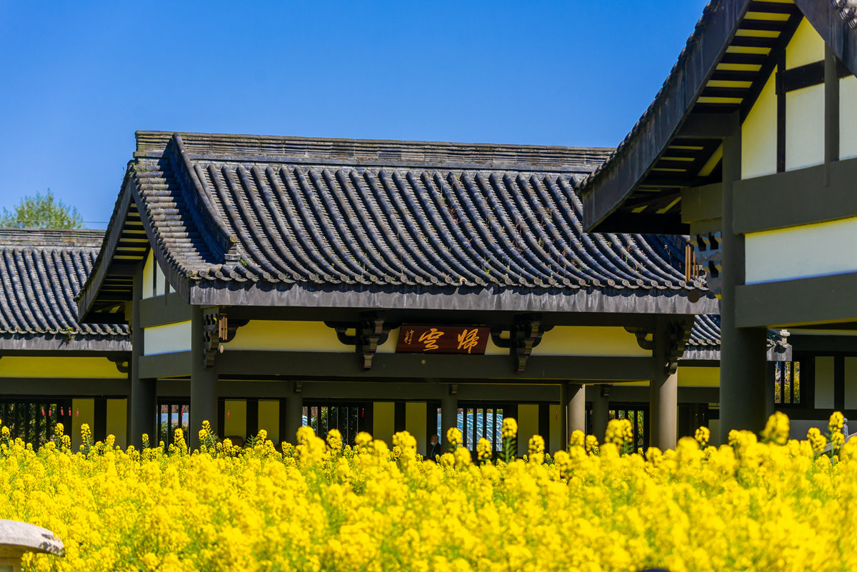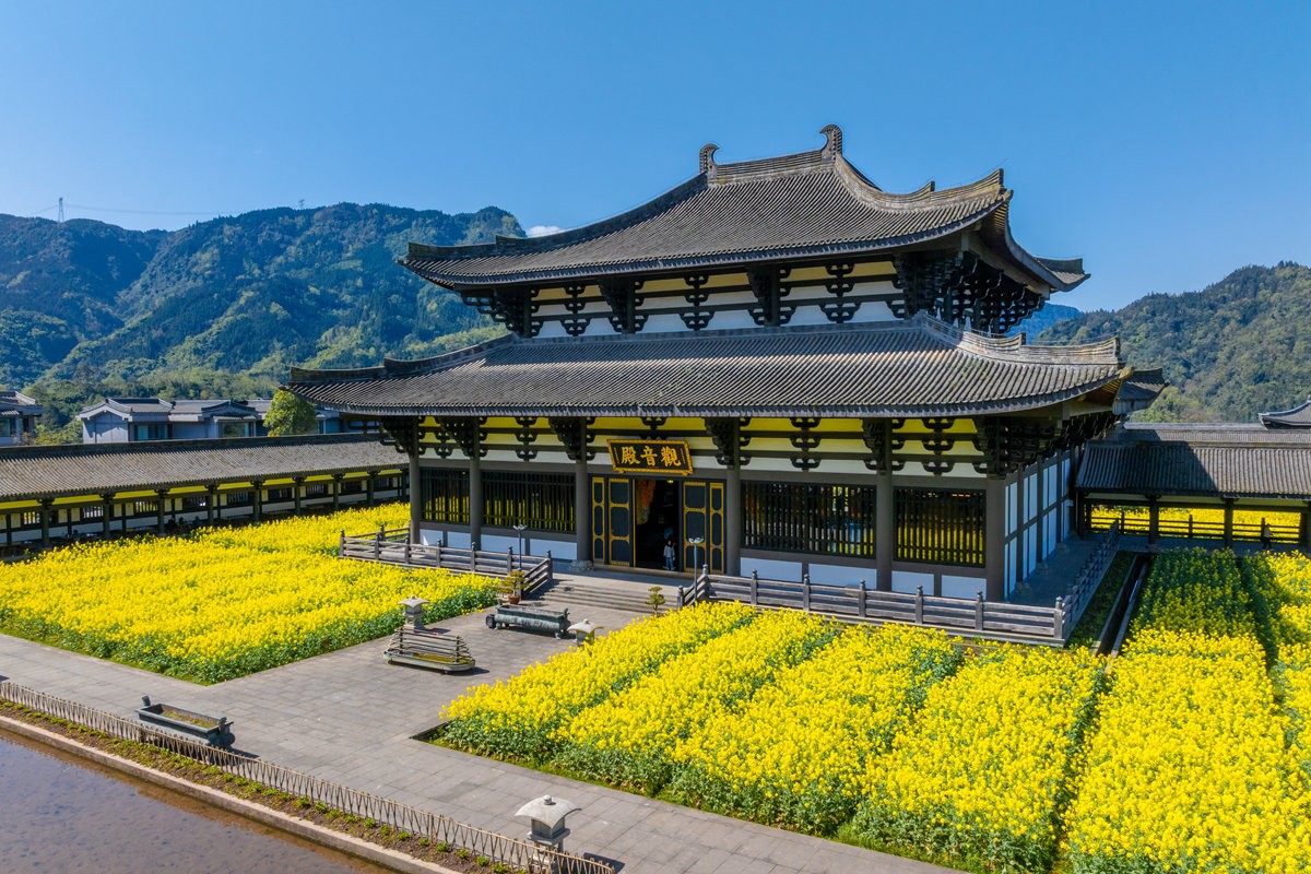 早春时节,巴蜀大地春意萌动,洪雅县柳江光明寺迎来绝美景致。寺内油菜花竞相绽放,满目金黄,丛间蝶舞蜜蜂忙,浓浓花香清新自由、沁人心脾。金色花海如锦绣,将佛殿映衬得金璧光辉、庄严神圣。